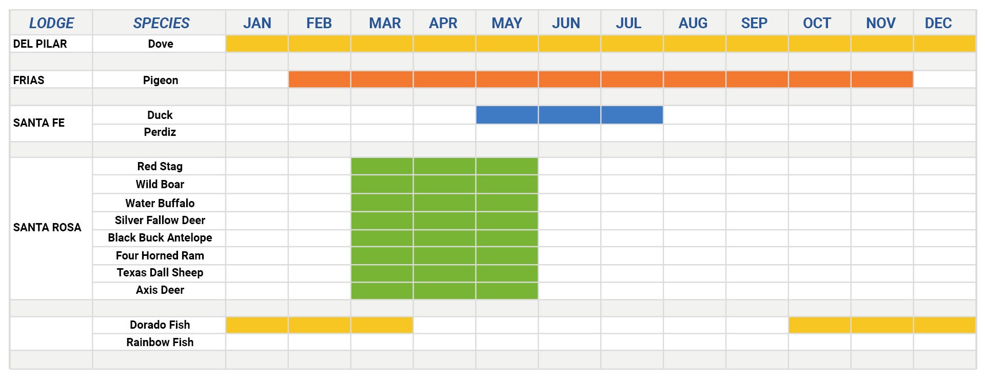 Seasons by Species